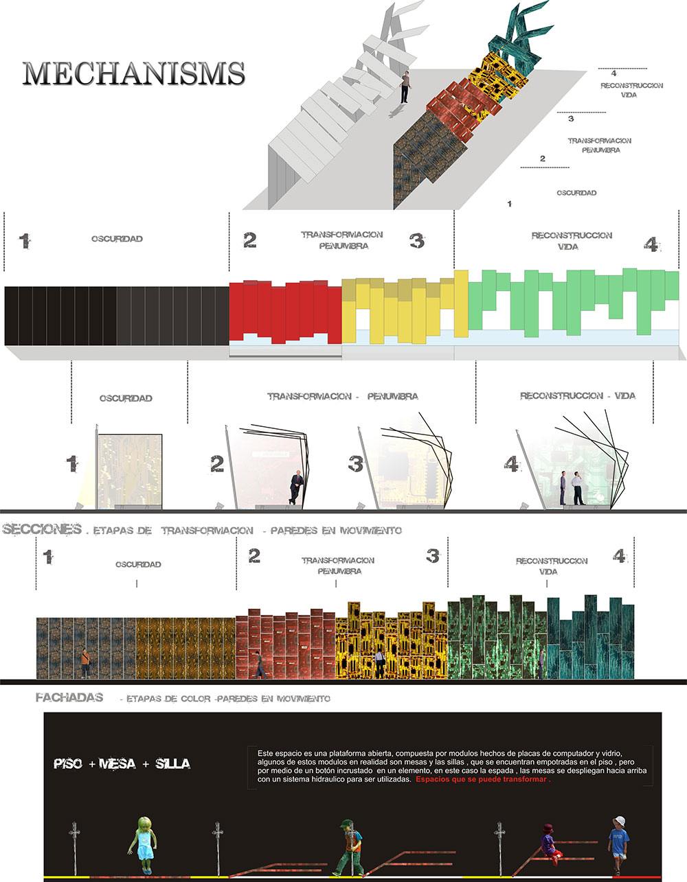 The mechanisms are designed to move structures and to open up to white spaces so the chosen art can be displayed.